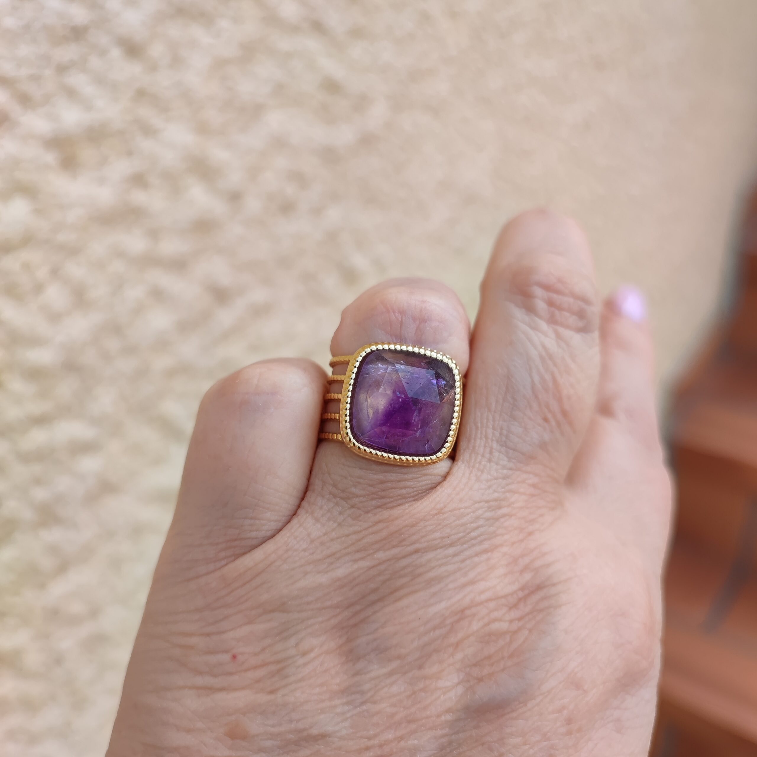 La bague Saskia avec la pierre en améthyste est magnifique. De grande qualité