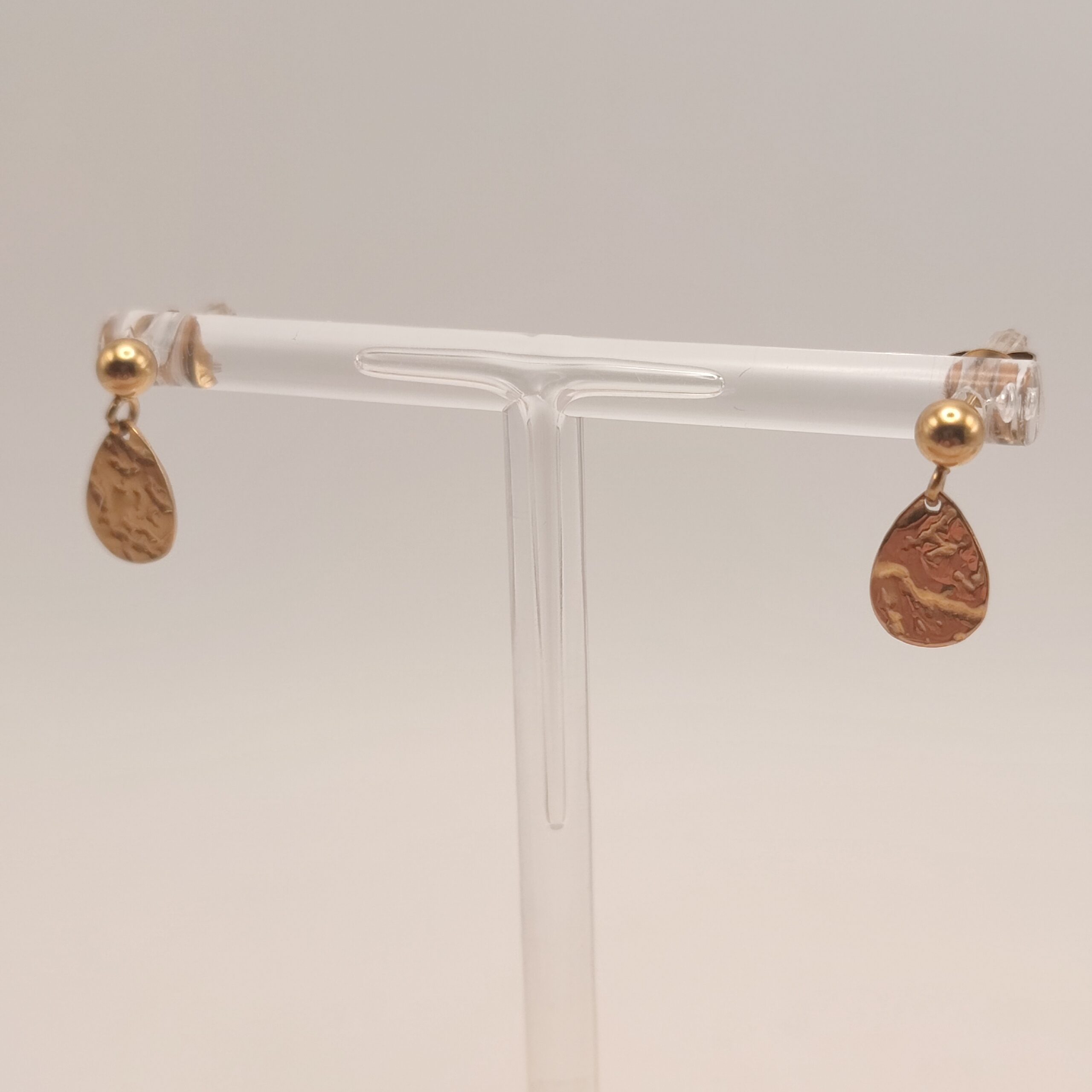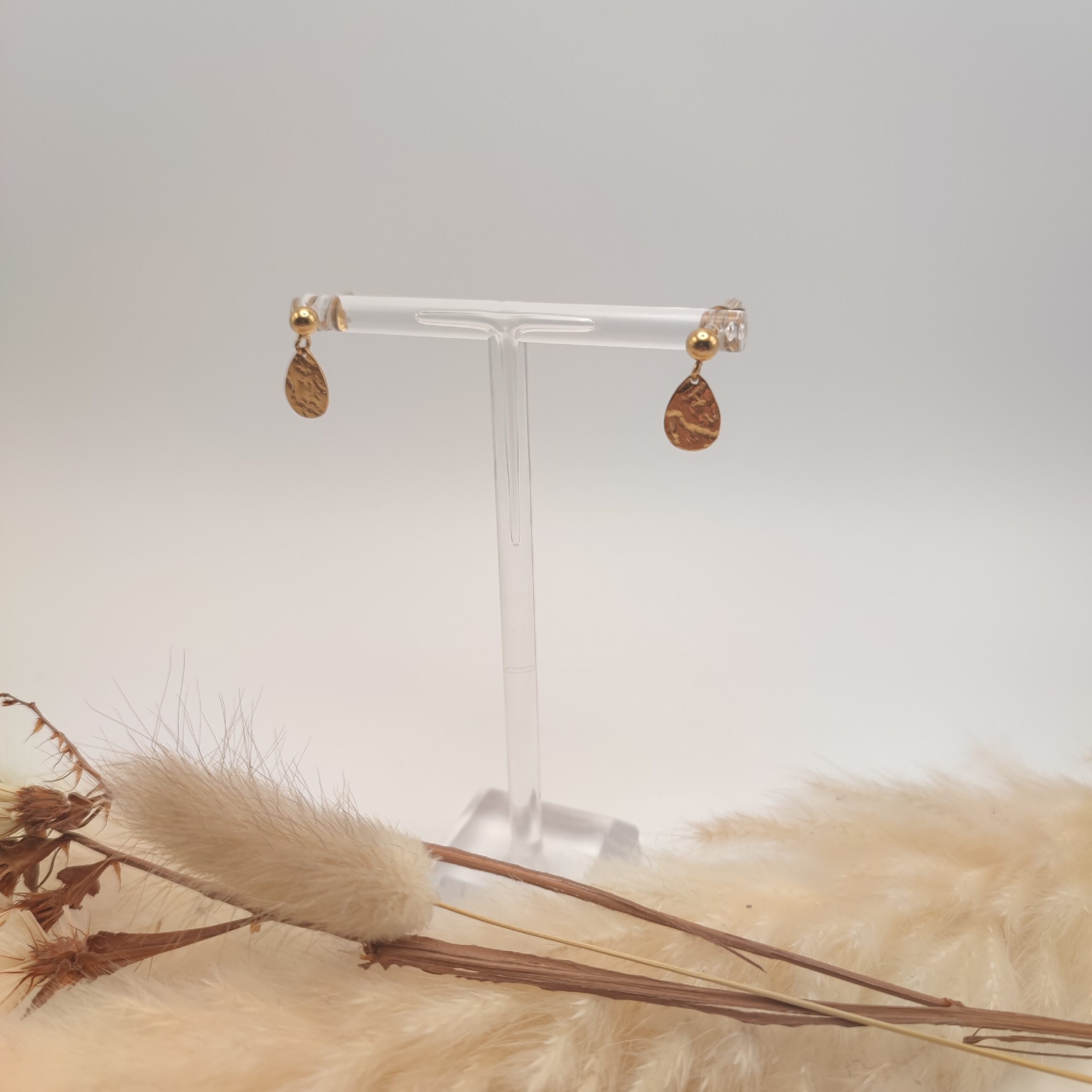 Boucles d’oreilles de clou d’oreille, en acier inoxydable doré et un sequin ovale martelé.