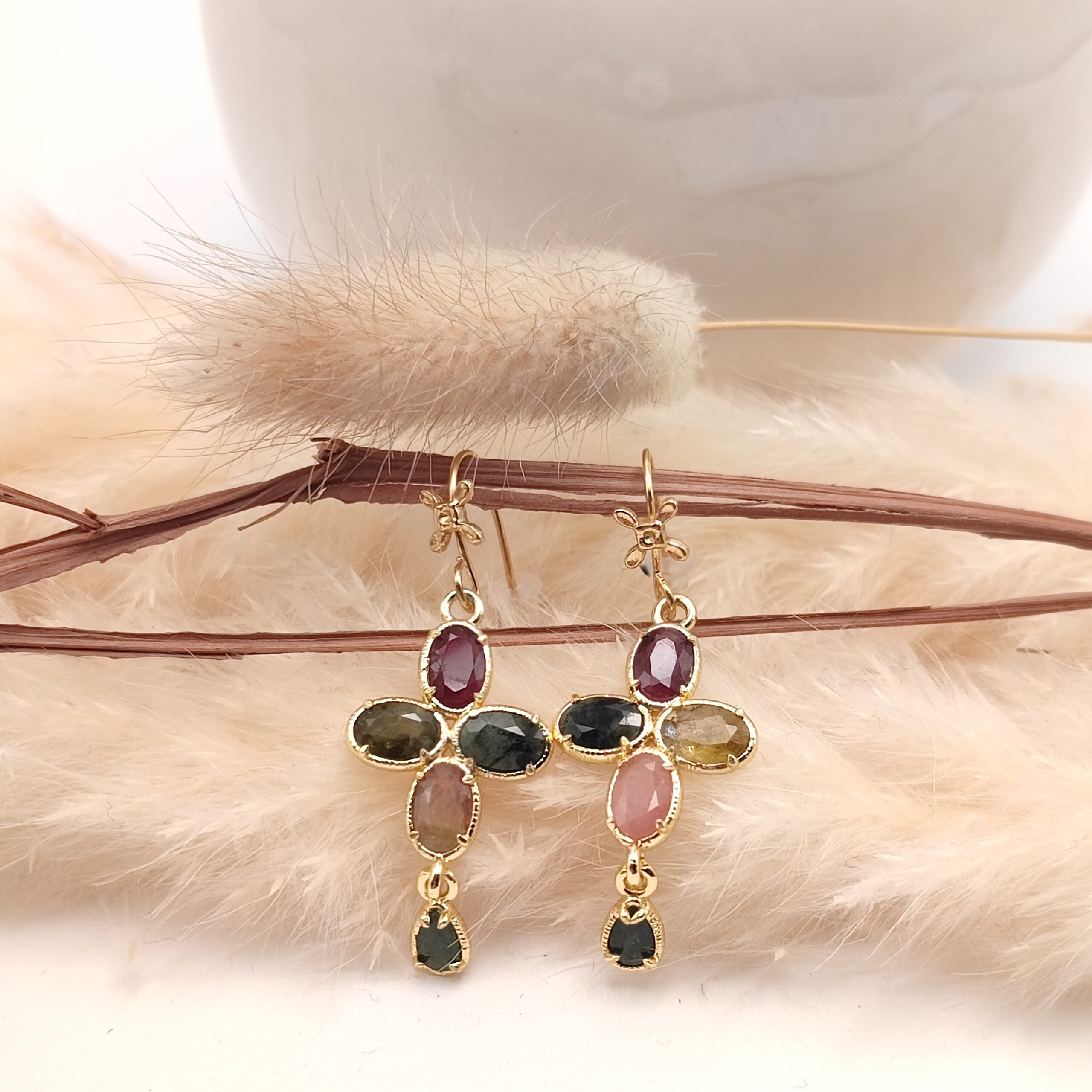 • Matières : laiton, pierres naturelles: Tourmalines multicolores.