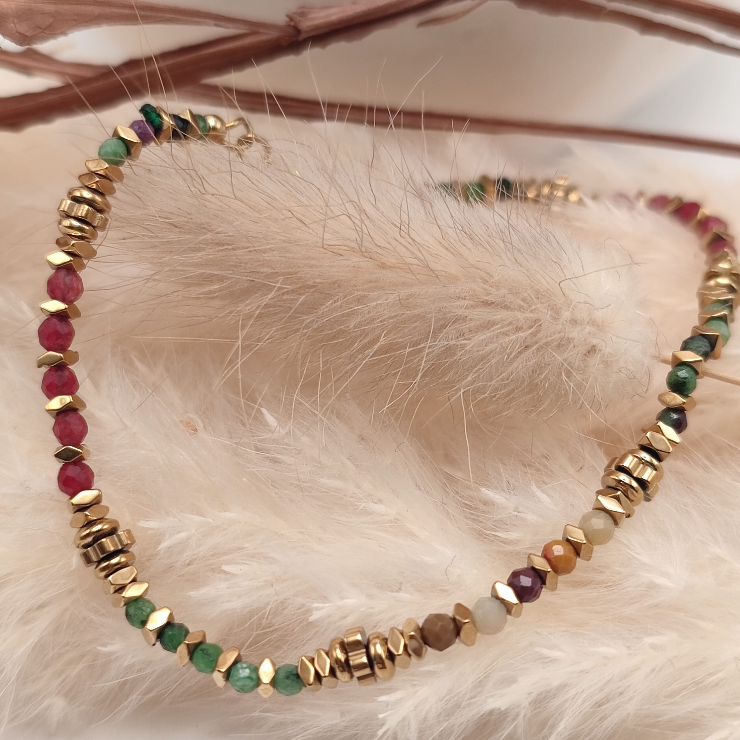 Bracelet délicat et raffiné en acier inoxydable composé de pierres naturelles, séparées par des perles rondelles . A porter seul pour une allure délicate ou en accumulation pour un style plus tendance.