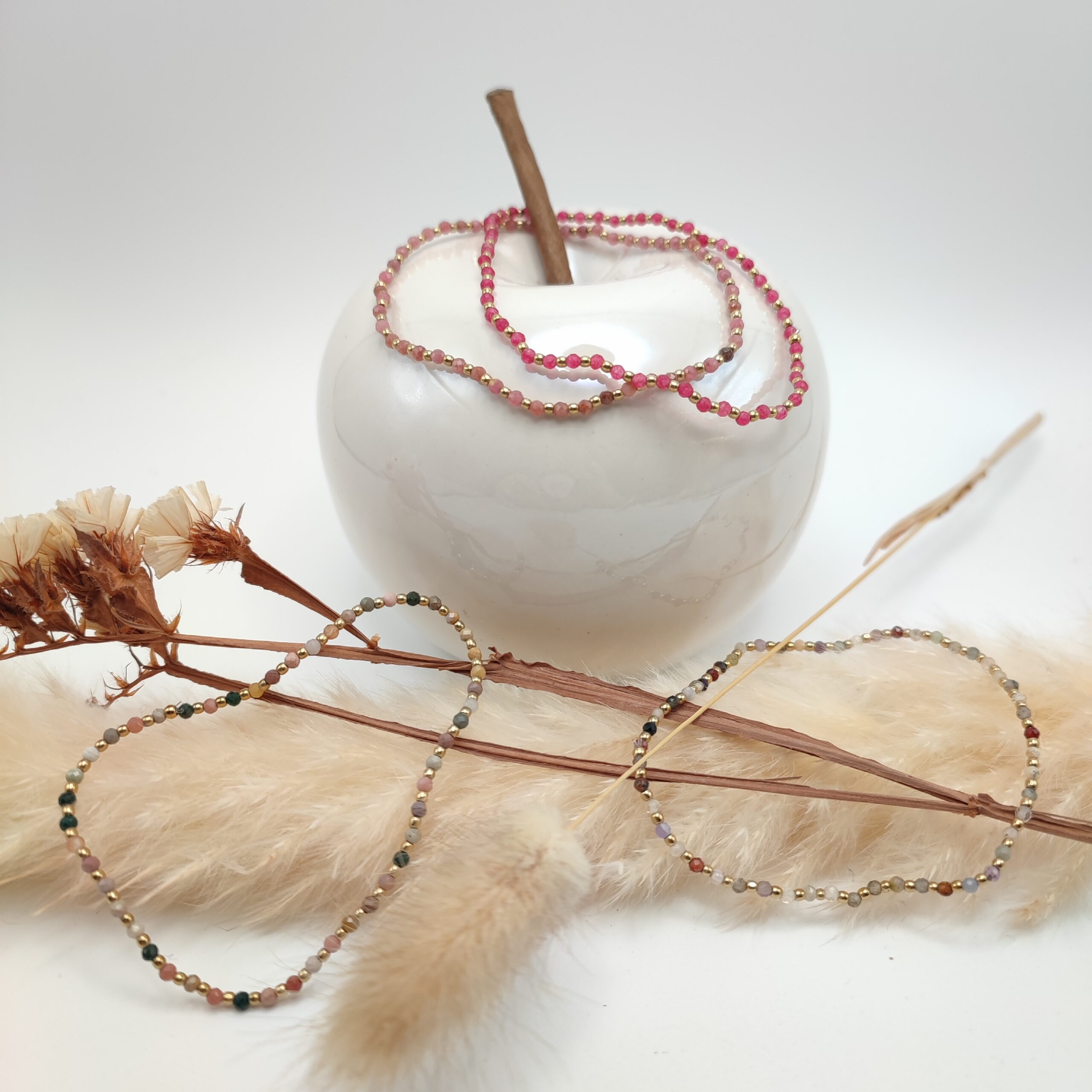 Bracelet fin en lot de 2 bracelets élastiques composé de pierres naturelles et de perles en acier inoxydable.