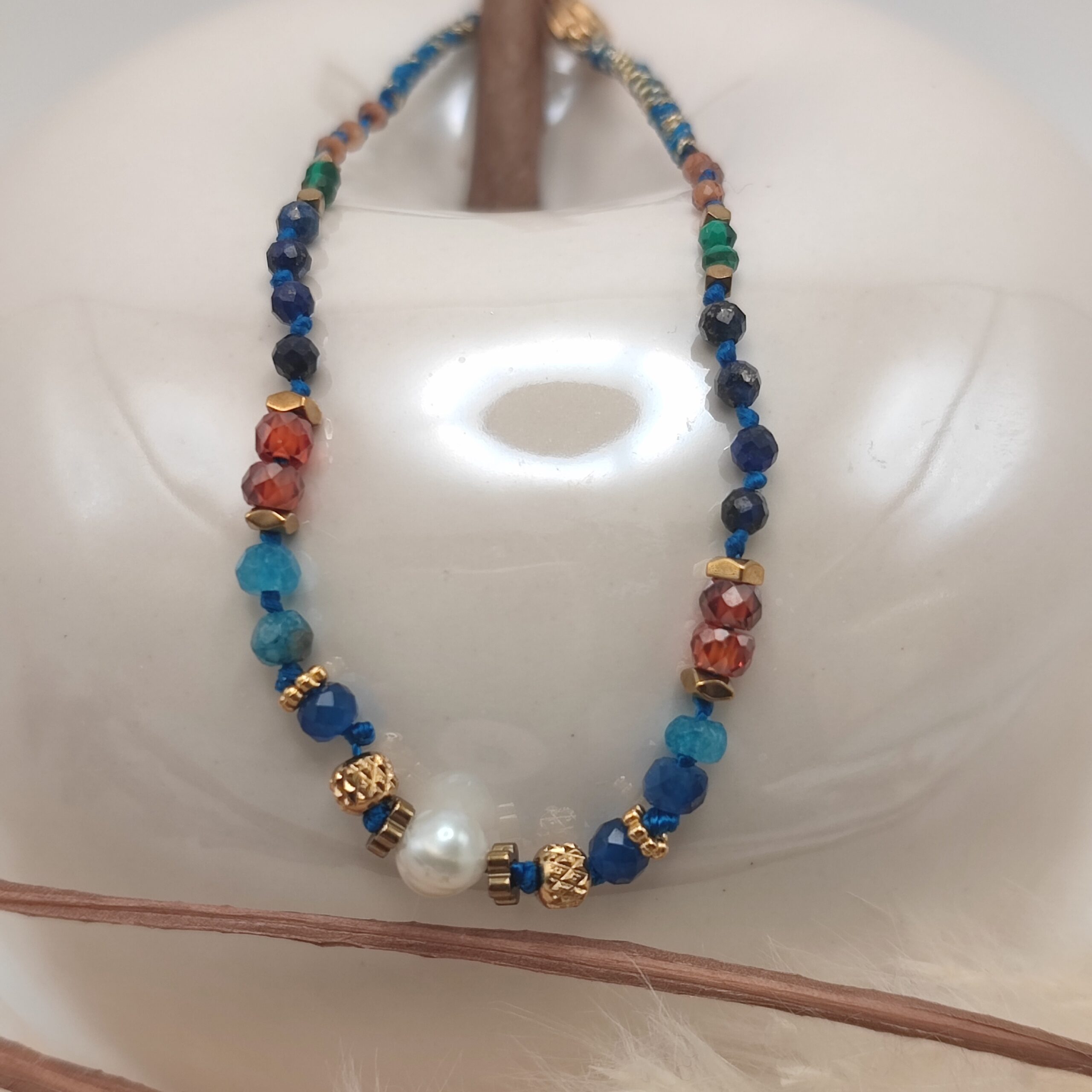 Oeil de tigre, Perles d'eau douce, Tourmaline, Turquoise africaine