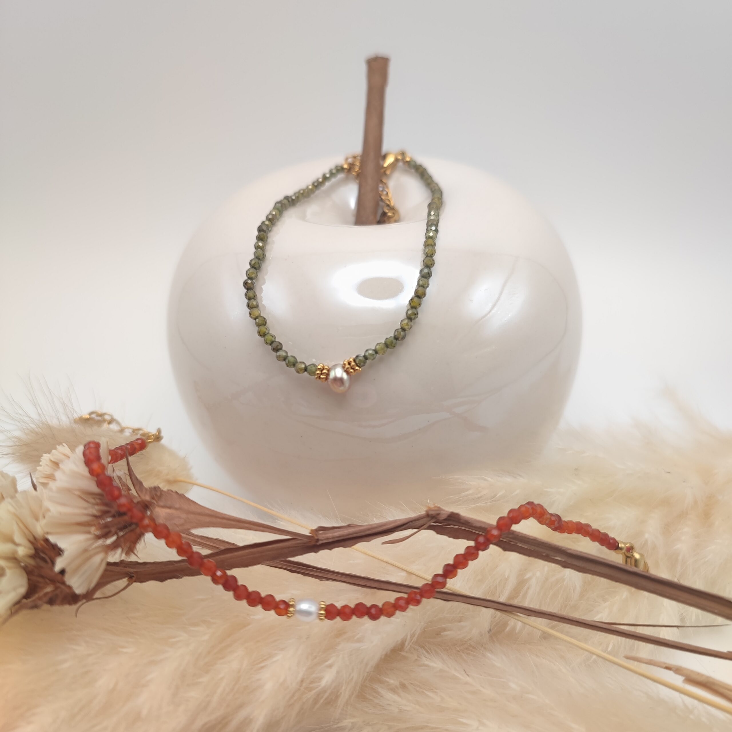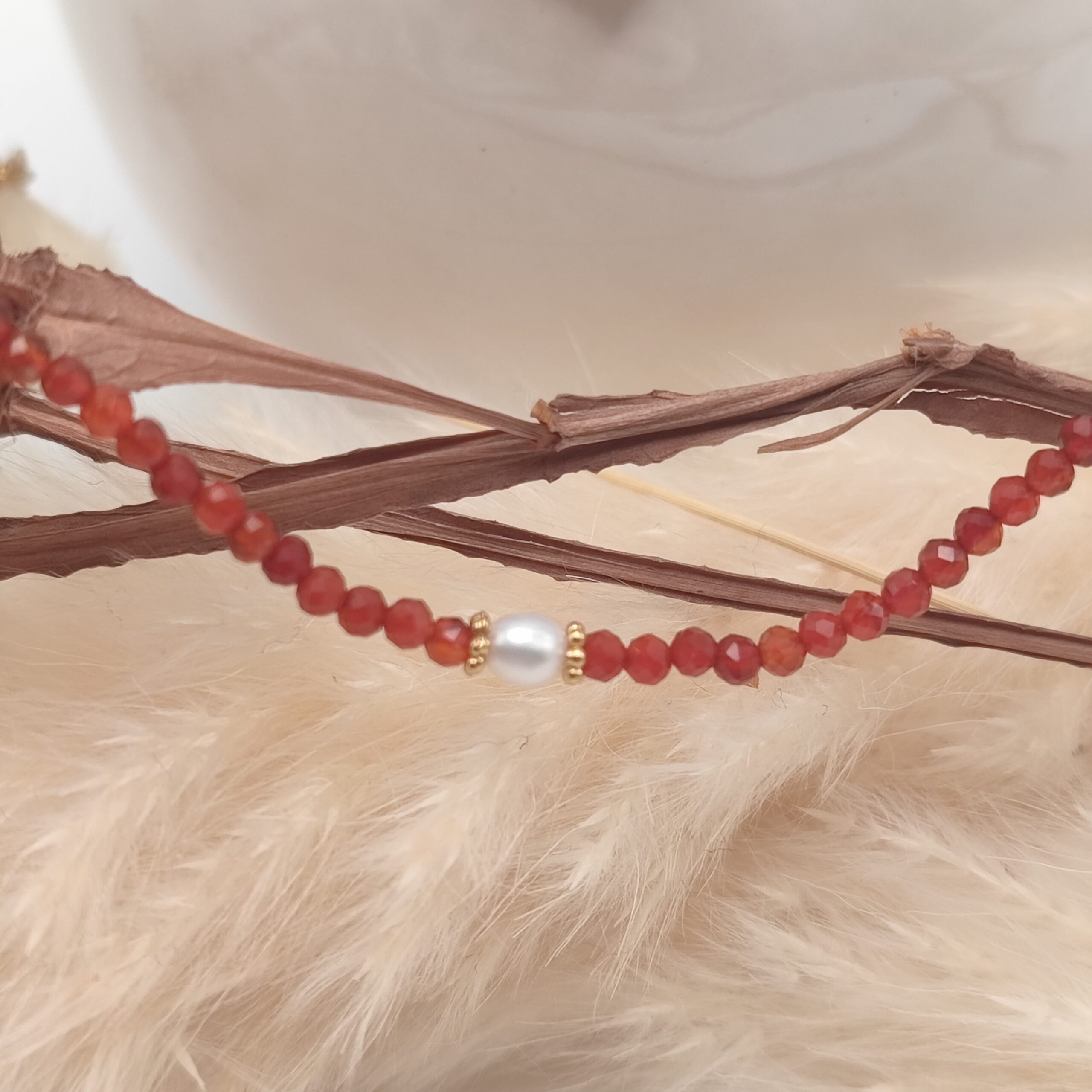 Il y a une variation pour ce bracelet zirconium rouge et perle d’eaux douces blanche.