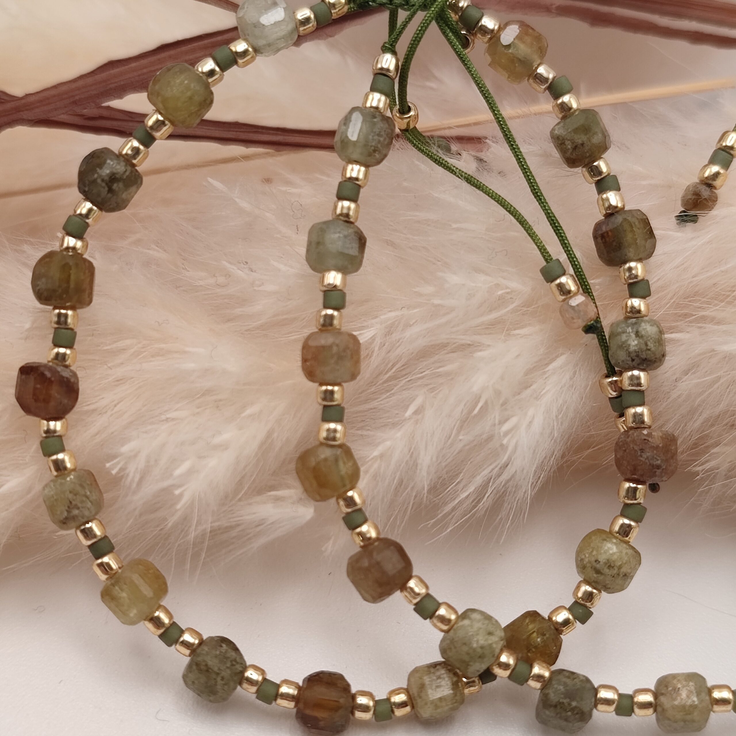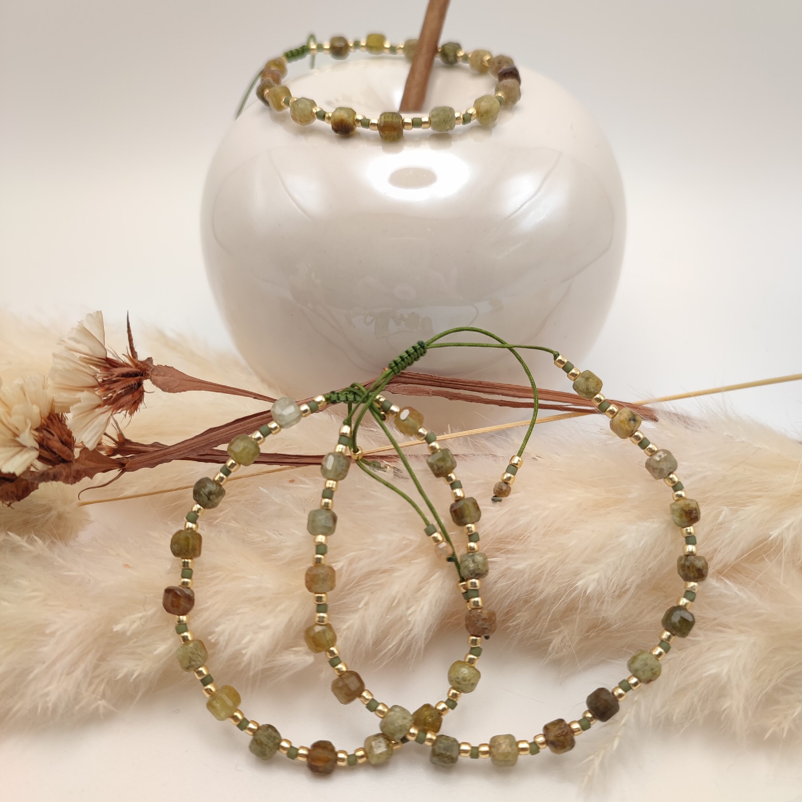 Bracelet fin en fil perlé de pierres naturelles en forme de cubes  sont montées sur fil avec nœud coulissant pour s’adapter à tout les poignets.