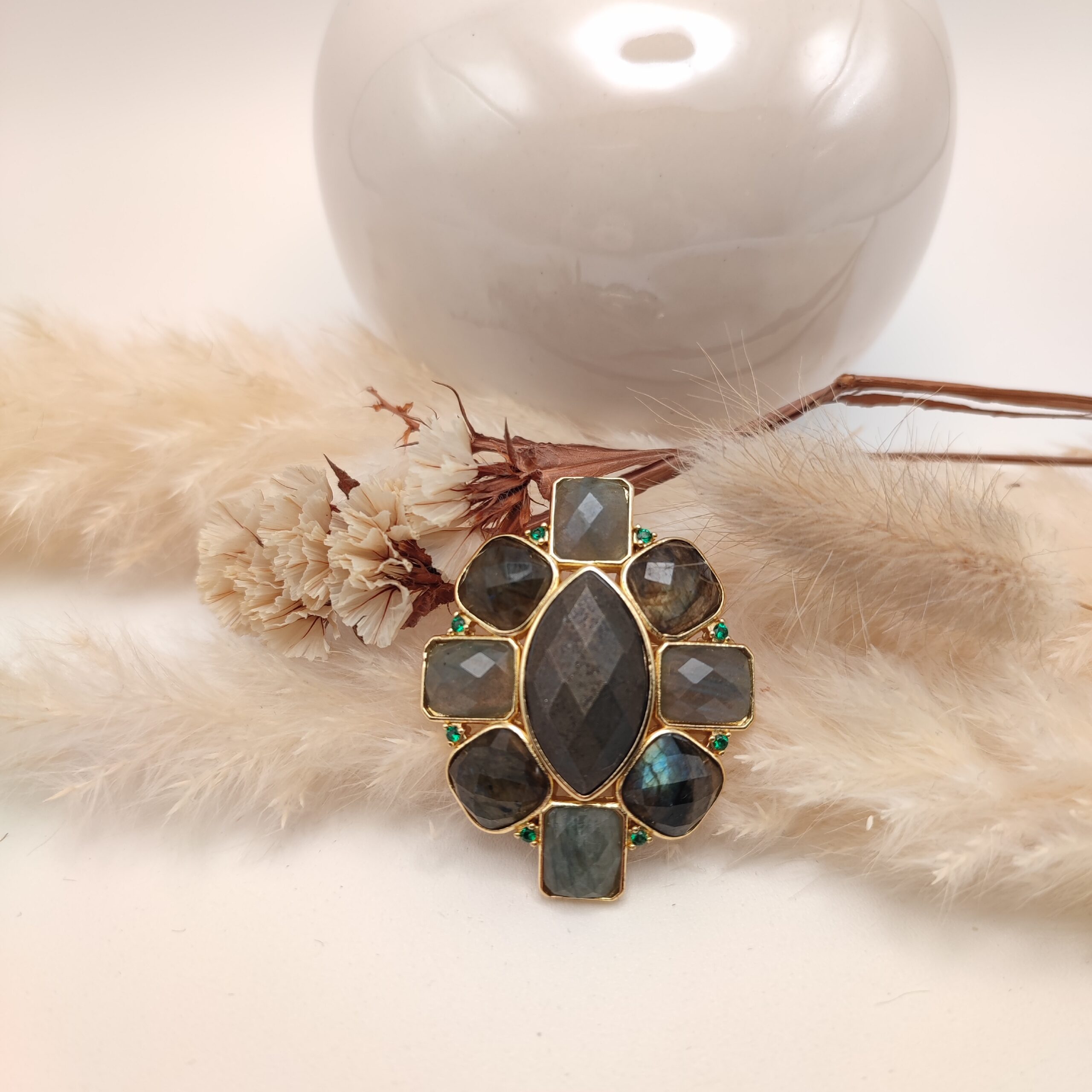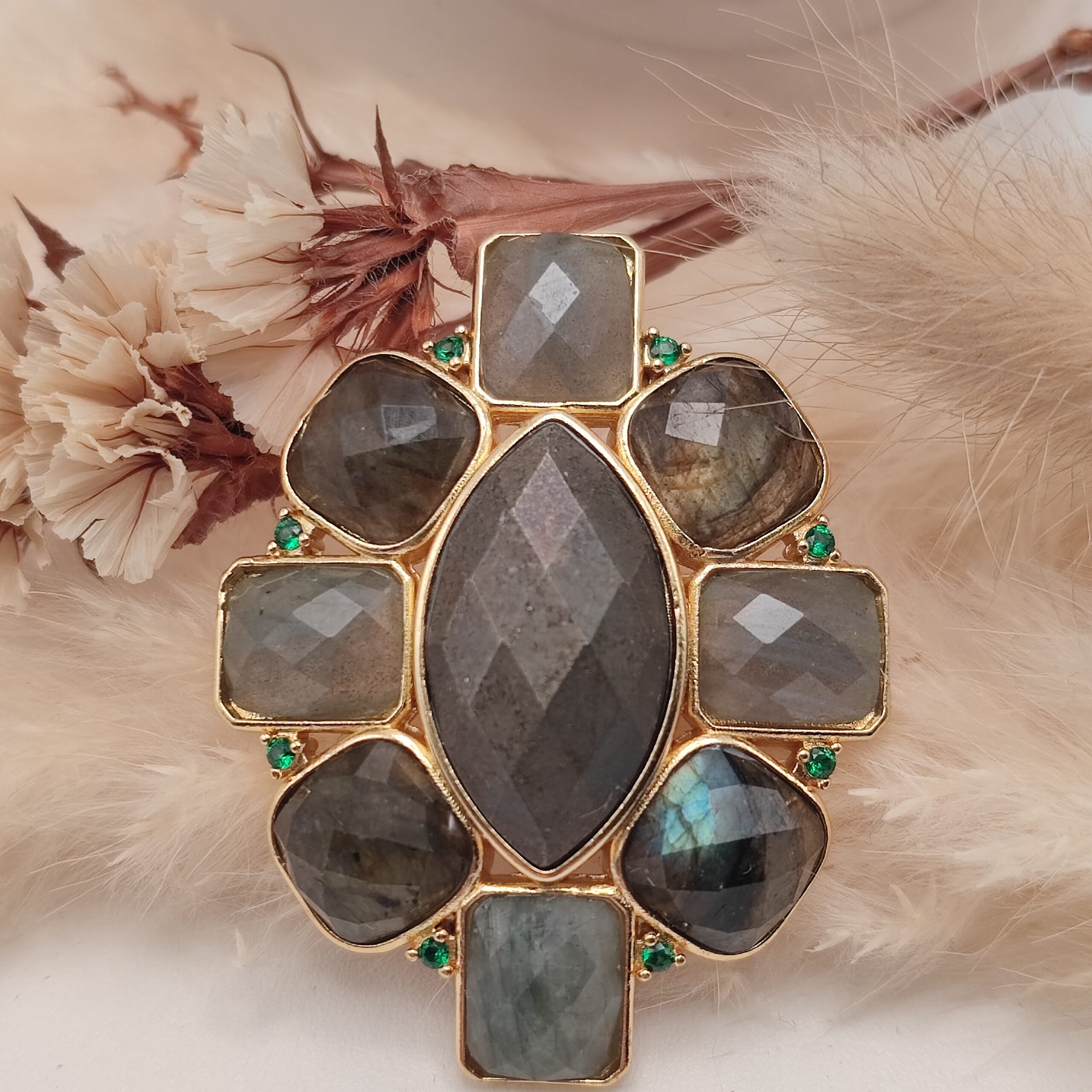 - Pierres naturelles: labradorite, pyrite
