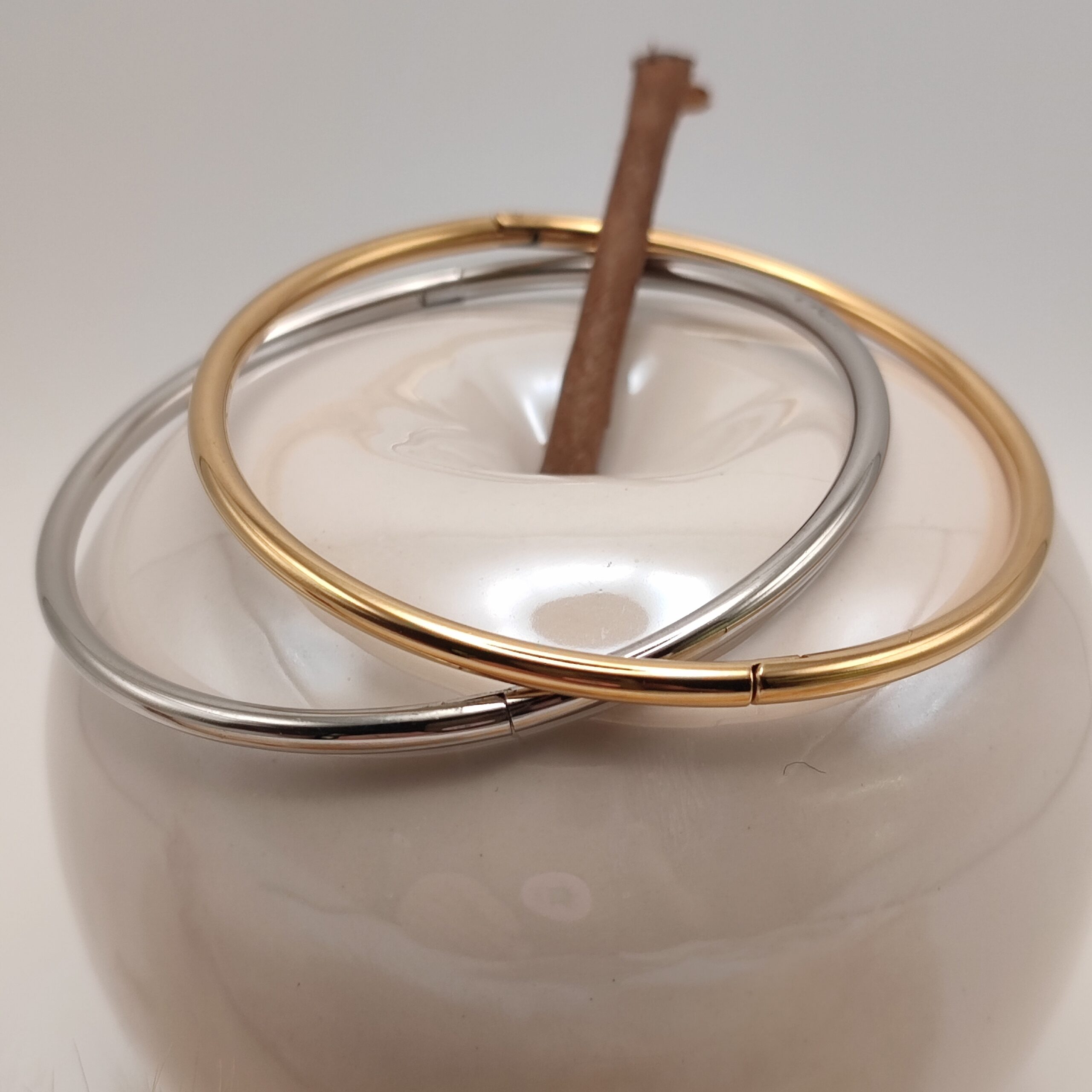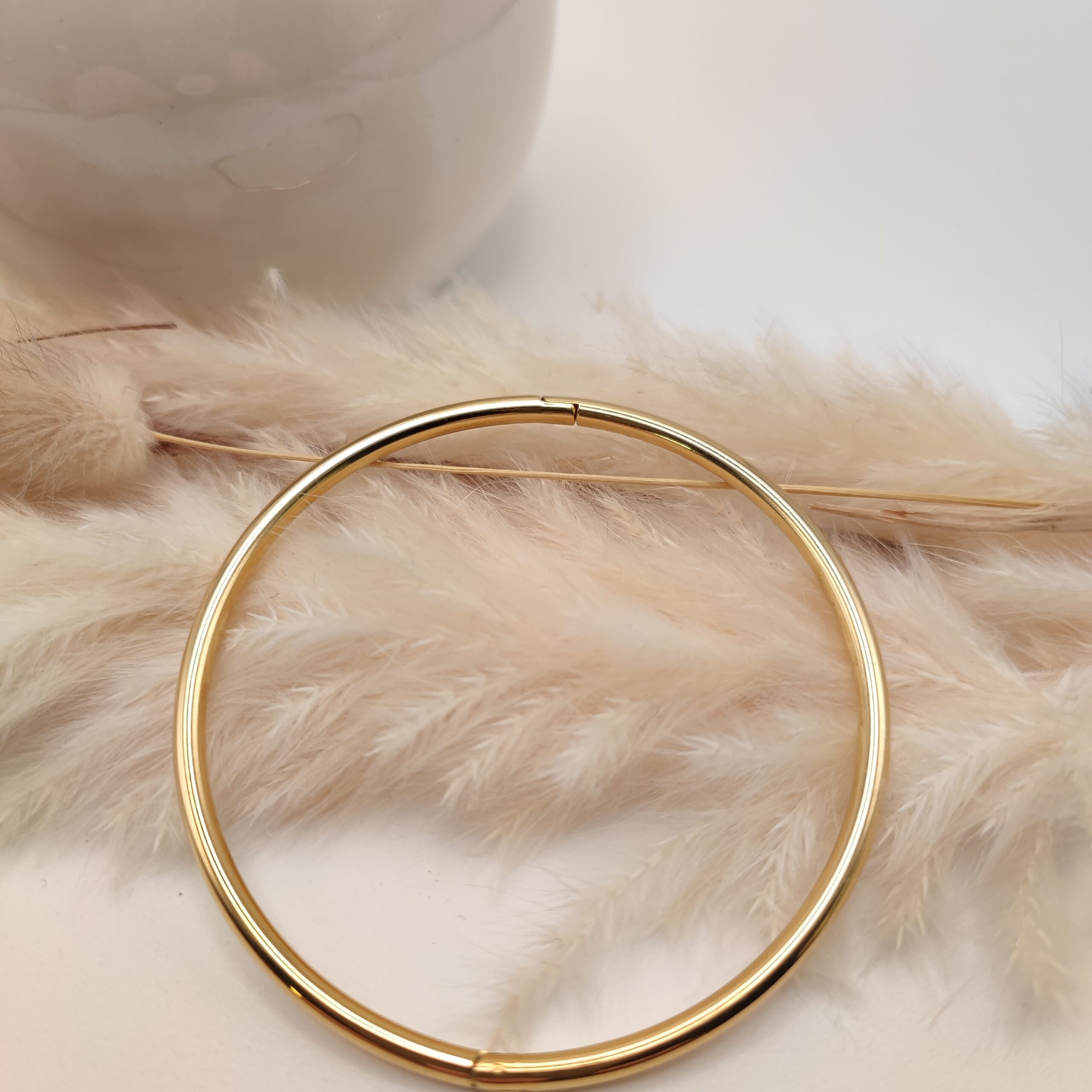 Jonc fermé en acier inoxydable, avec une texture lisse ronde.